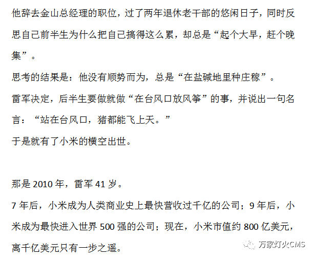 雷軍35歲雖然已經是金山總經理和卓越董事長,但是做得又累又焦慮又迷茫,直到41歲創立小米,才開始一飛沖天;