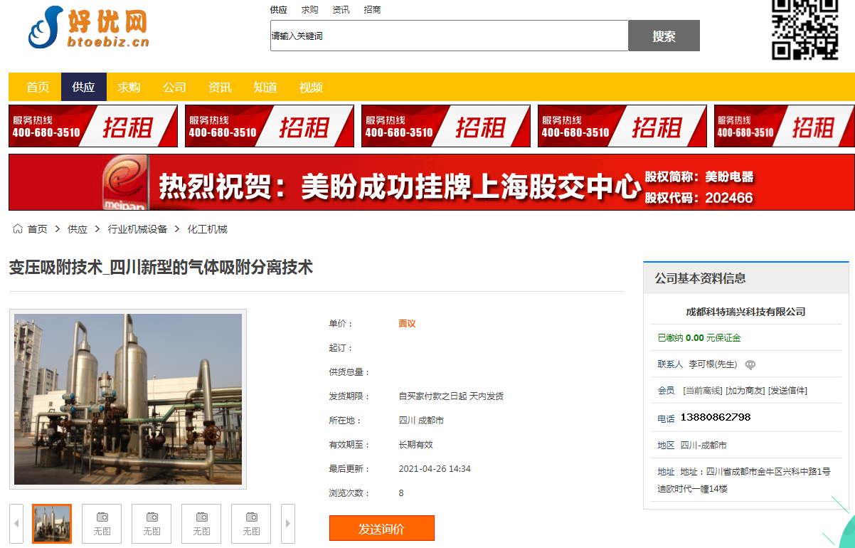 投放824條商盟,成都氯乙烯專用吸附劑、2000方甲裂制氫裝置、1.5萬方甲裂制氫、800方焦?fàn)t煤氣提氫、1.5萬方氫氣提純裝置、900方甲裂制氫、成都氧化鋁專用硅膠等關(guān)鍵詞都在吉斯特建材網(wǎng)、好優(yōu)網(wǎng)、商機購、365資源網(wǎng)等平臺展現(xiàn),大大提高了搜索引擎抓取收錄機會。